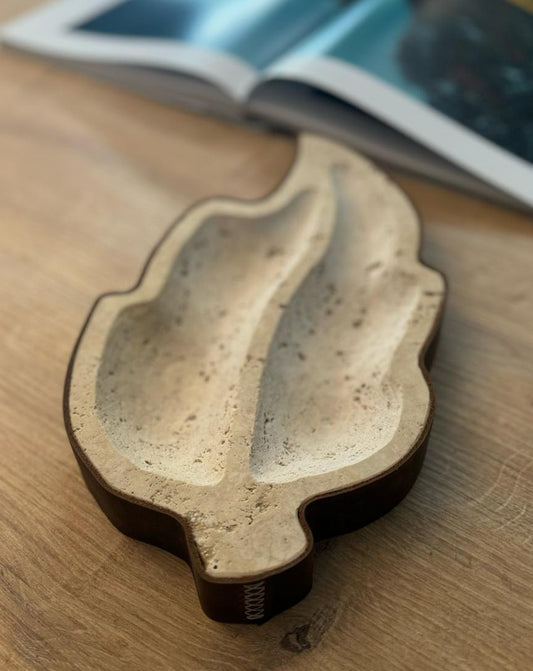 Deri Giydirmeli Traverten Mermer Yaprak Çerezlik , Lüks Traverten Mermer Sunumluk