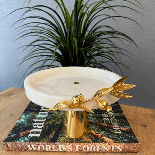 Pirinç Dekor ve Pirinç Konik Ayaklı Beyaz Mermer Sunumluk,