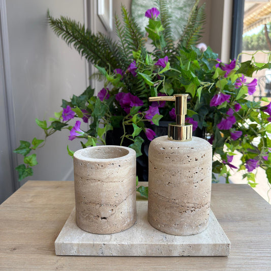 Traverten Mermer 3'lü Banyo Seti