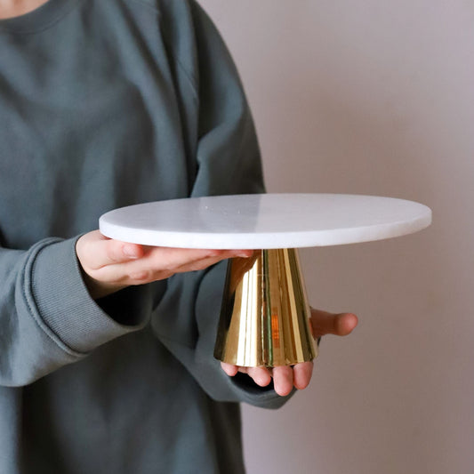 Beyaz Mermer Gold Metal Ayaklı Sunumluk