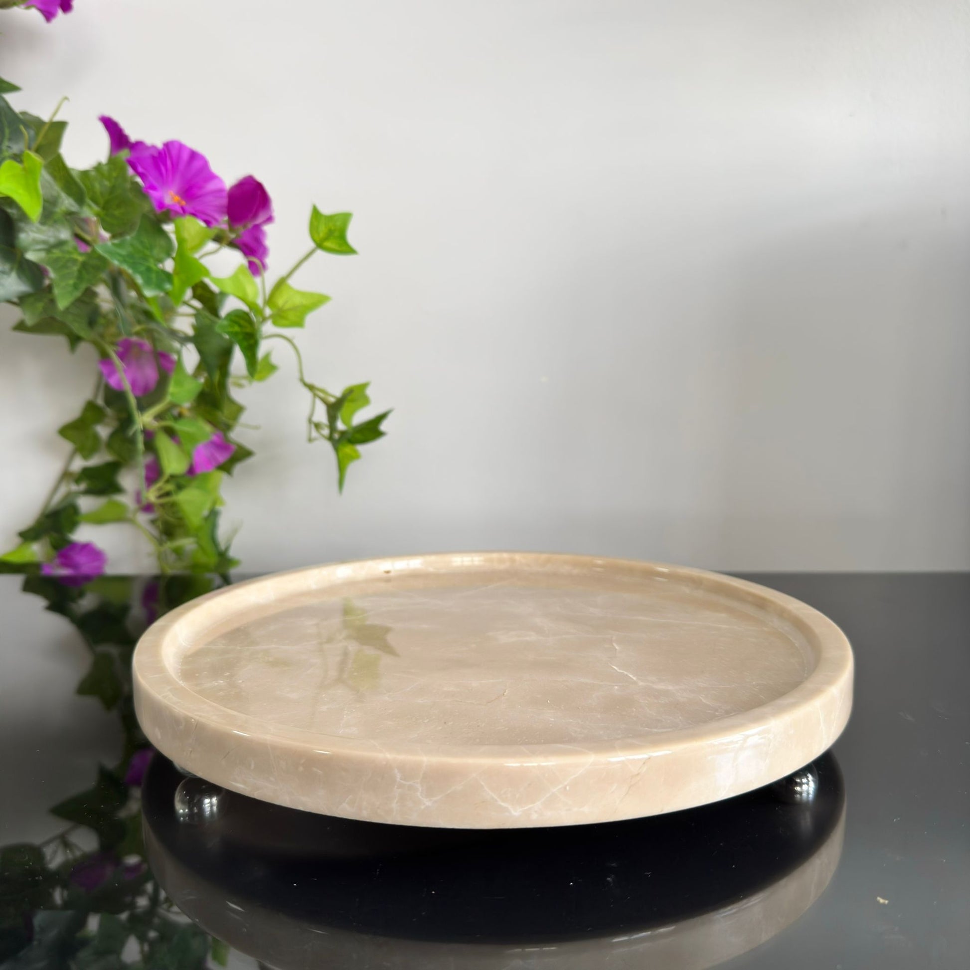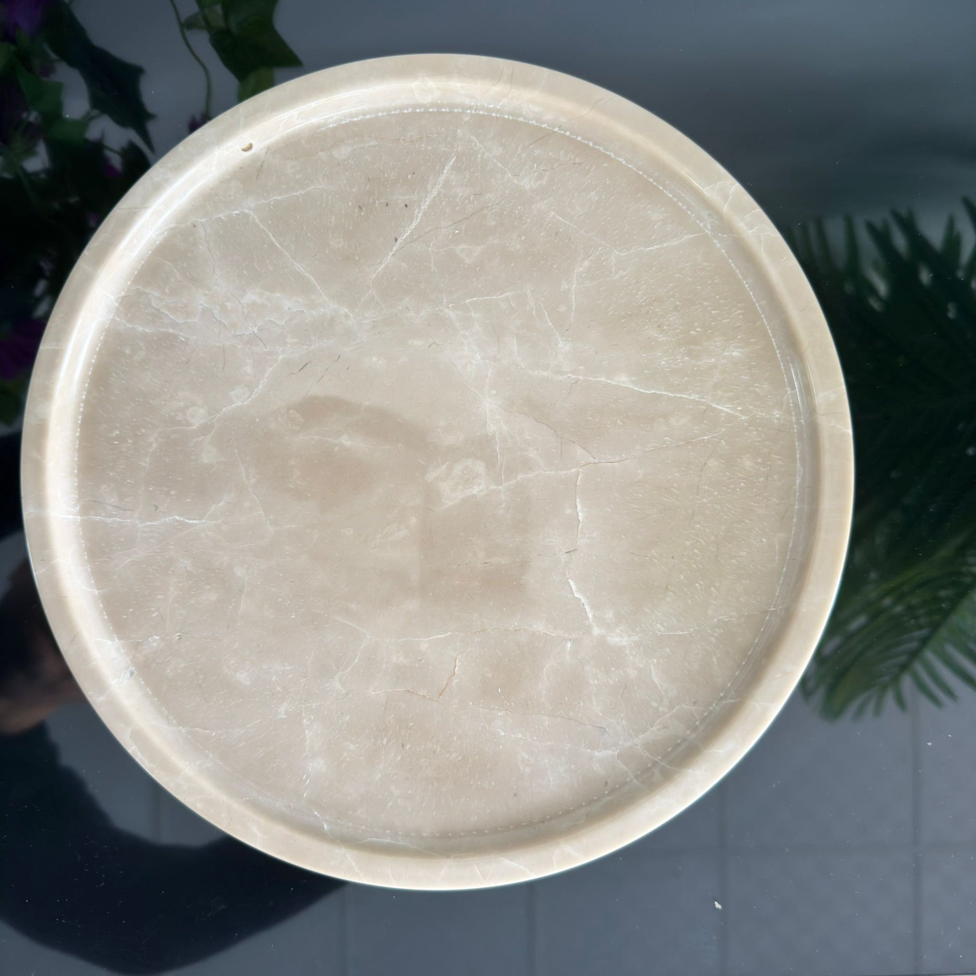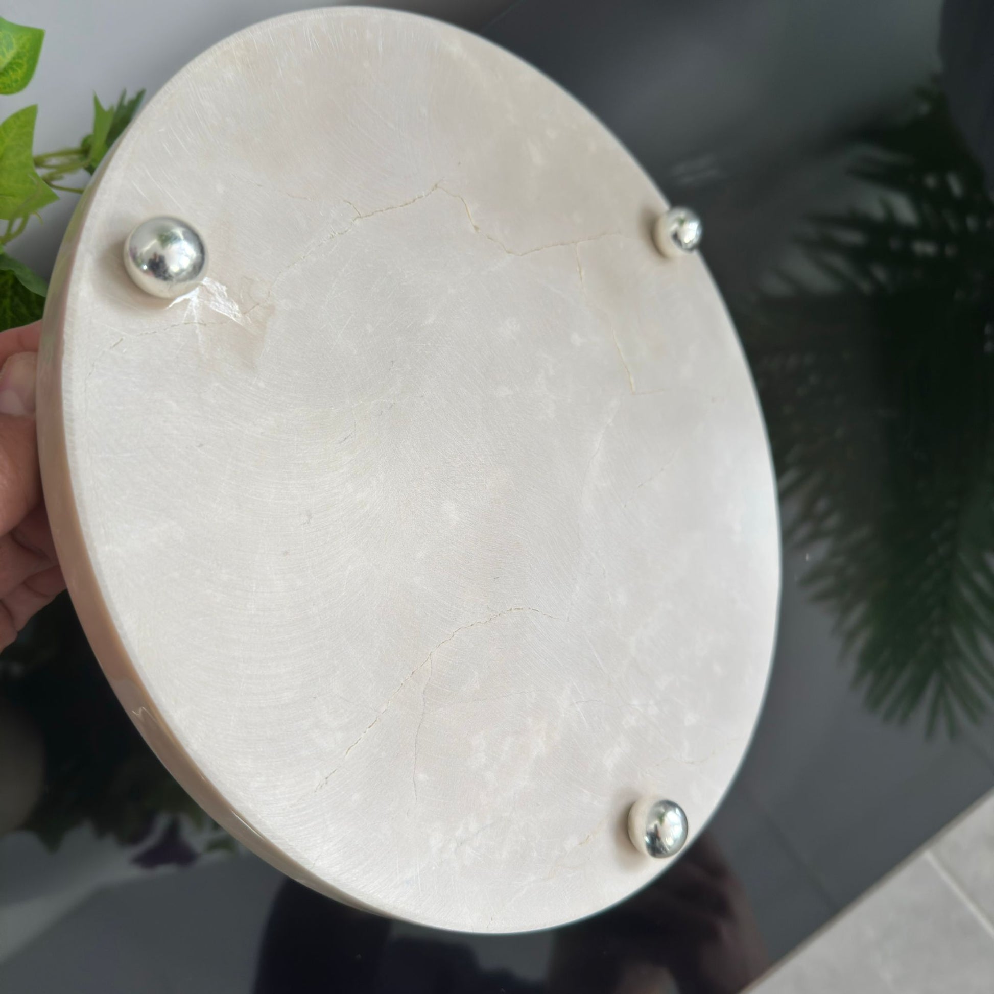 Bej Mermer Sunumluk , Bej Mermer Gümüş Top Ayaklı Sunum Tabağı
