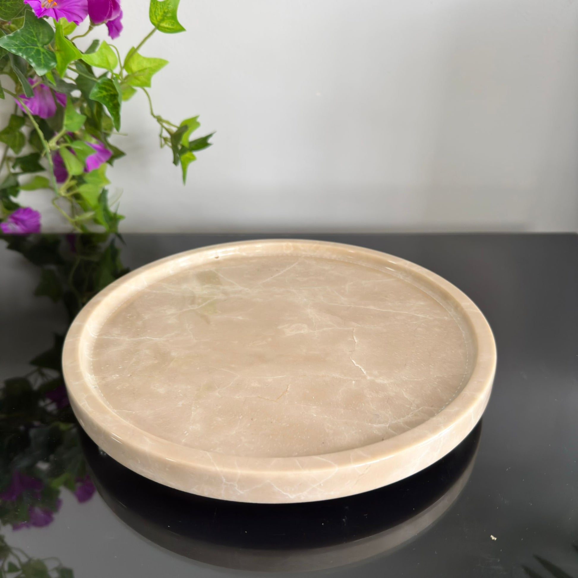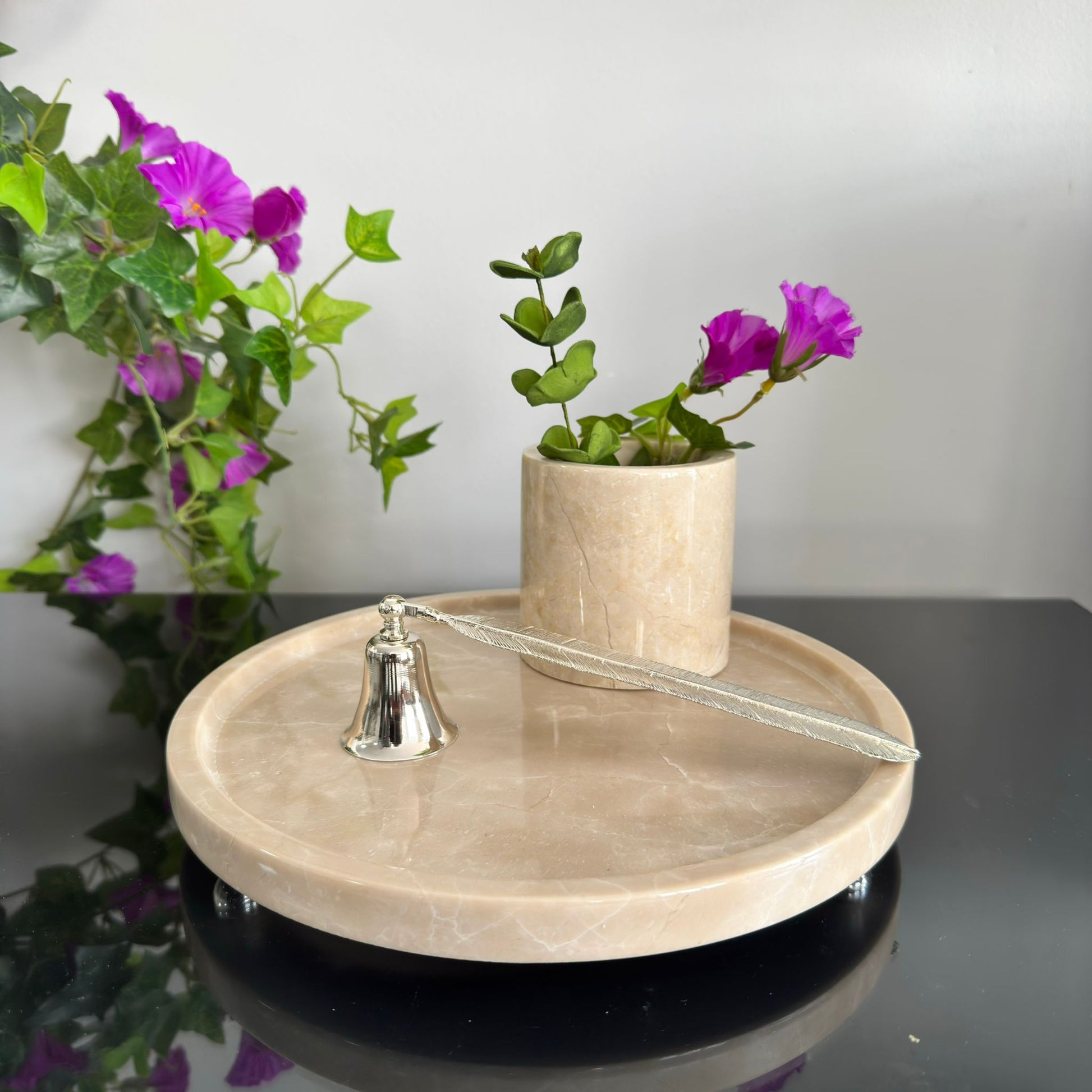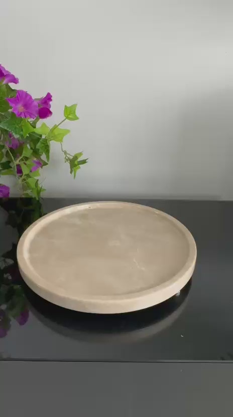 Bej Mermer Sunumluk , Bej Mermer Gümüş Top Ayaklı Sunum Tabağı