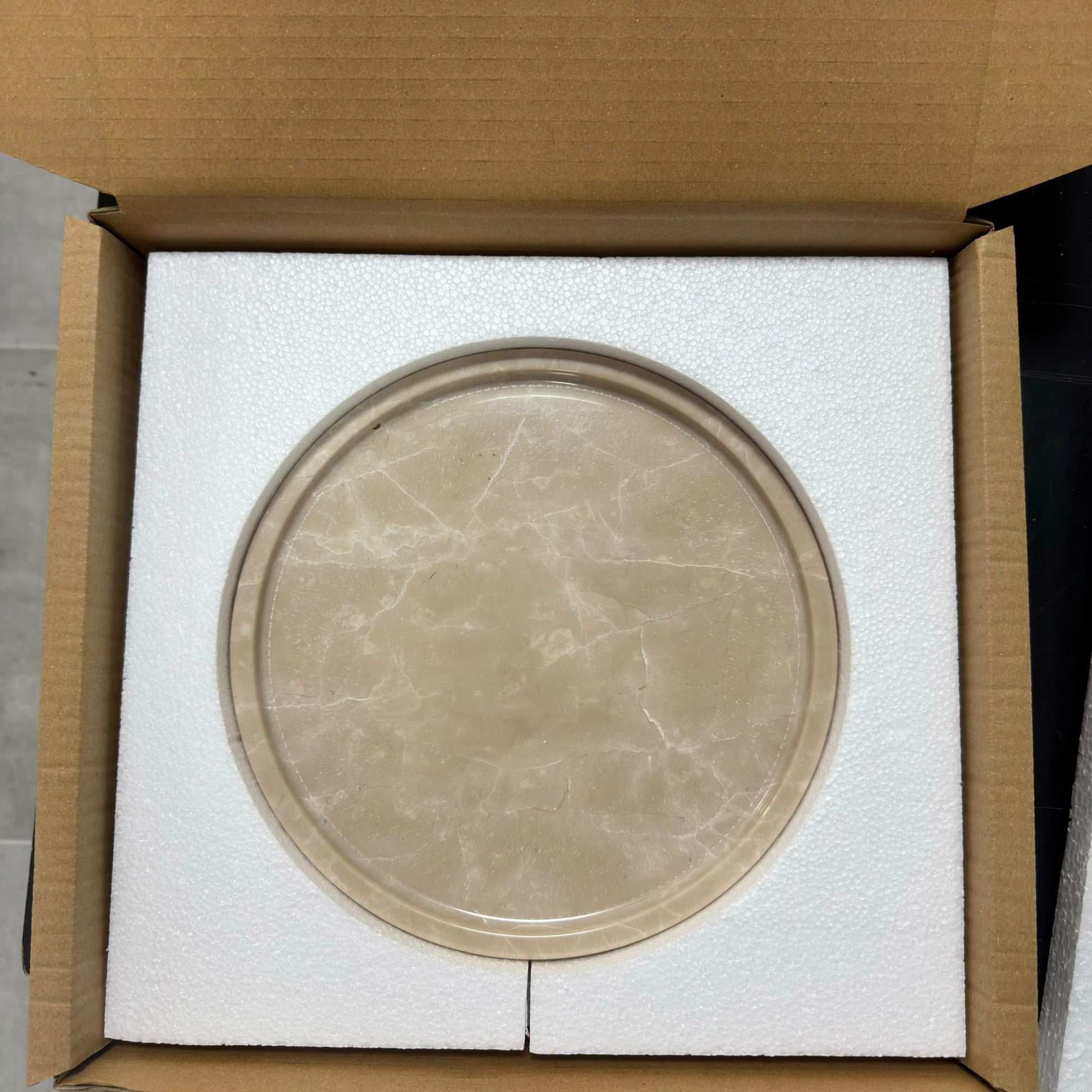 - Ürün doğal bej mermerden üretilmiştir.Sunumluk mermer çapı : 27 cm , mermer yüksekliği : 2 cm'dir , top ayaklı yüksekliği : 3,5 cm'dir.