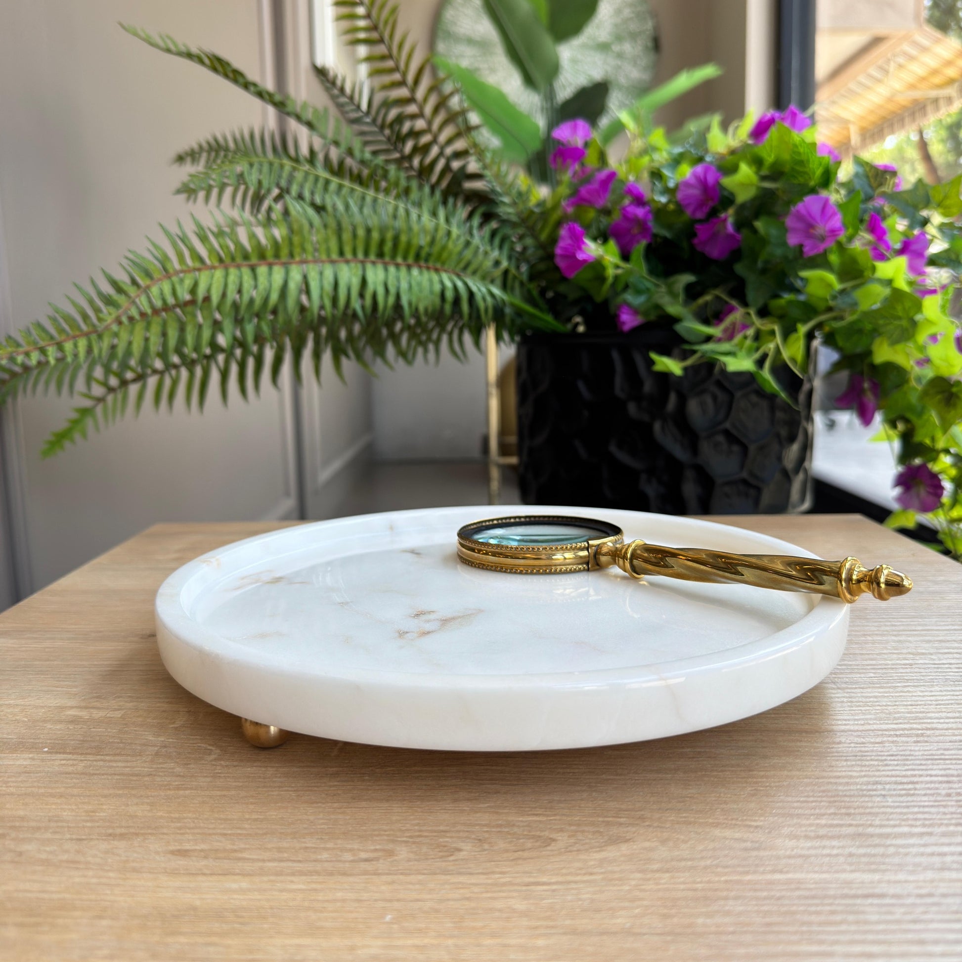 - Ölçü : Çap : 27 cm , Mermer Yüksekliği : 2 cm , Ayaklı Yükseklik : 3,5 cm , İç derinlik : 1 cm , Ürün ağırlığı : 1,9 kg.