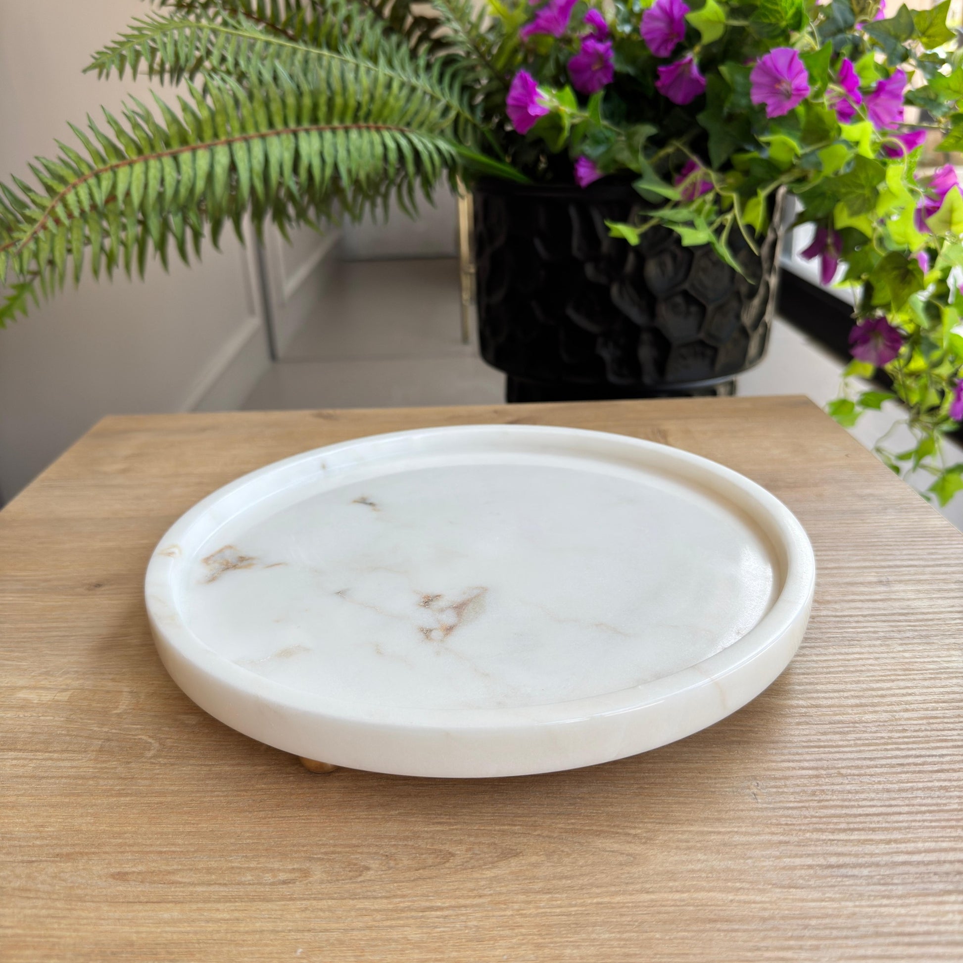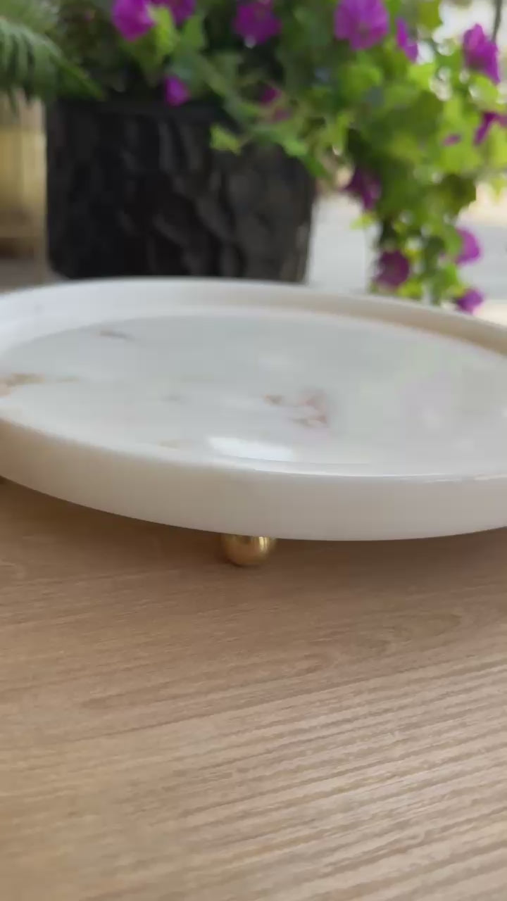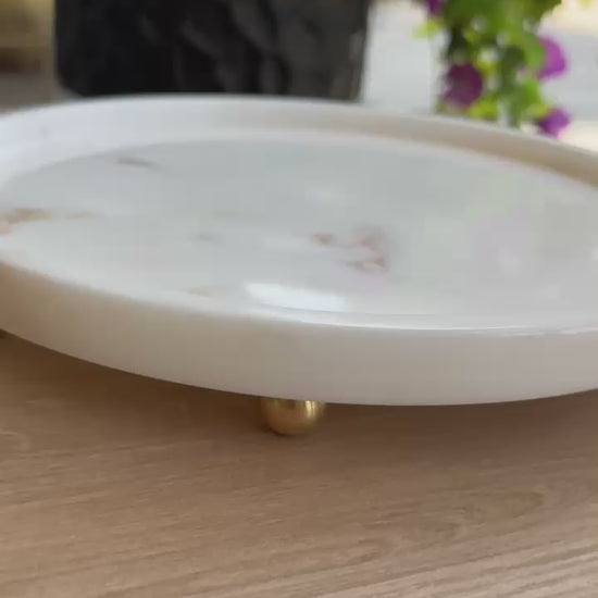 Beyaz Mermer Gold Top Ayaklı Sunumluk , Beyaz Mermer Ayaklı Sunumluk