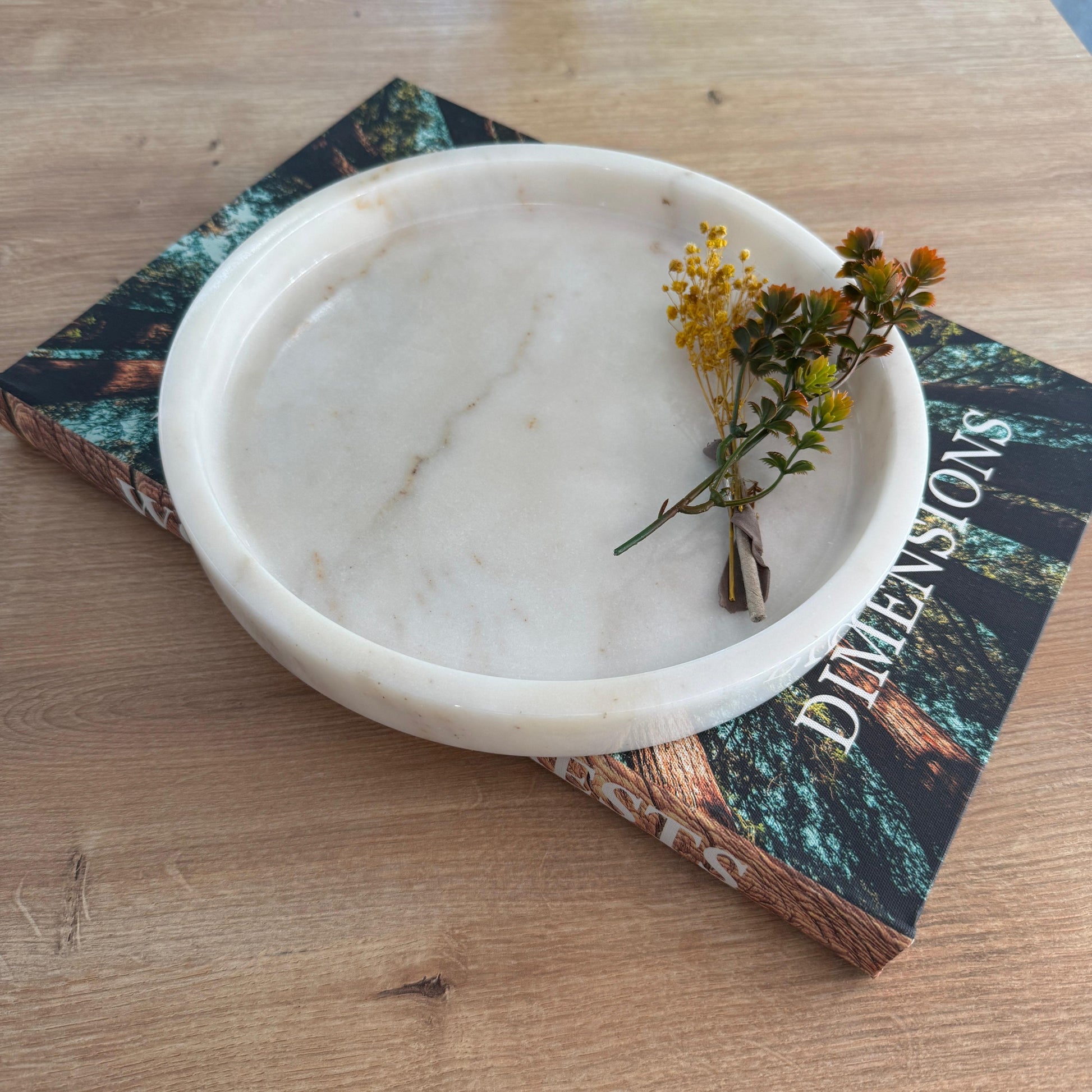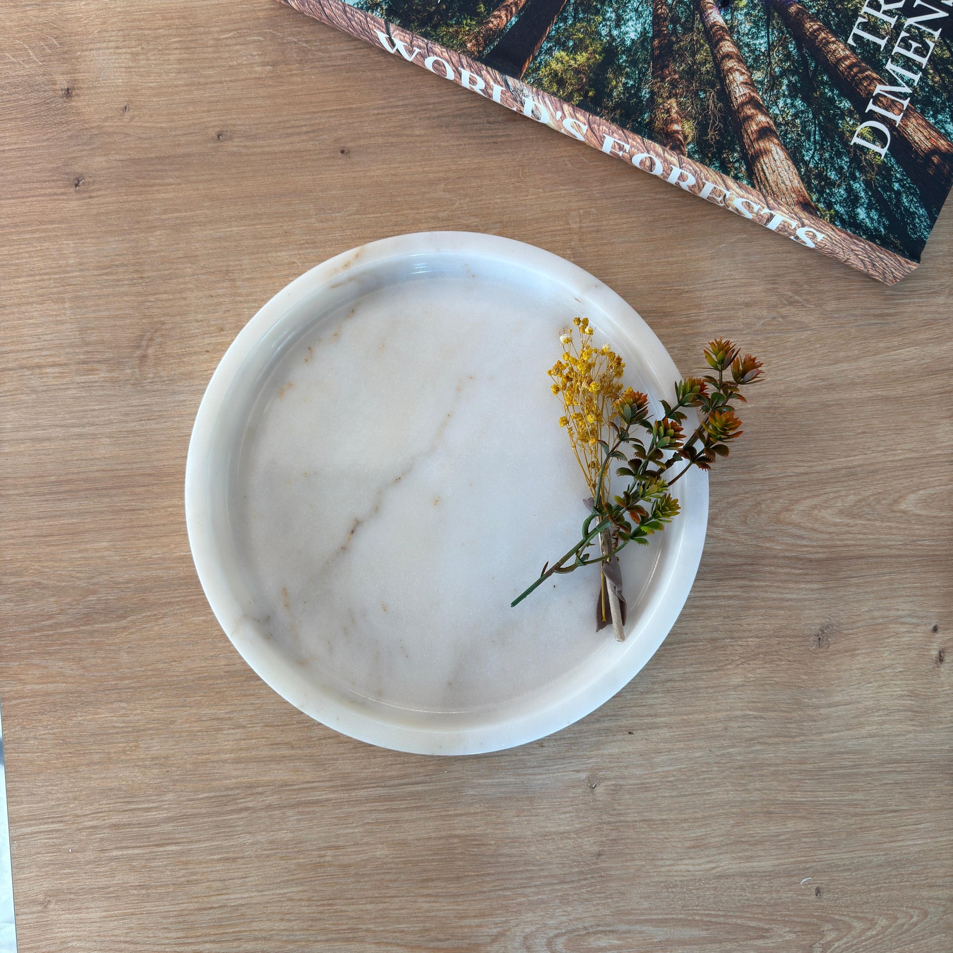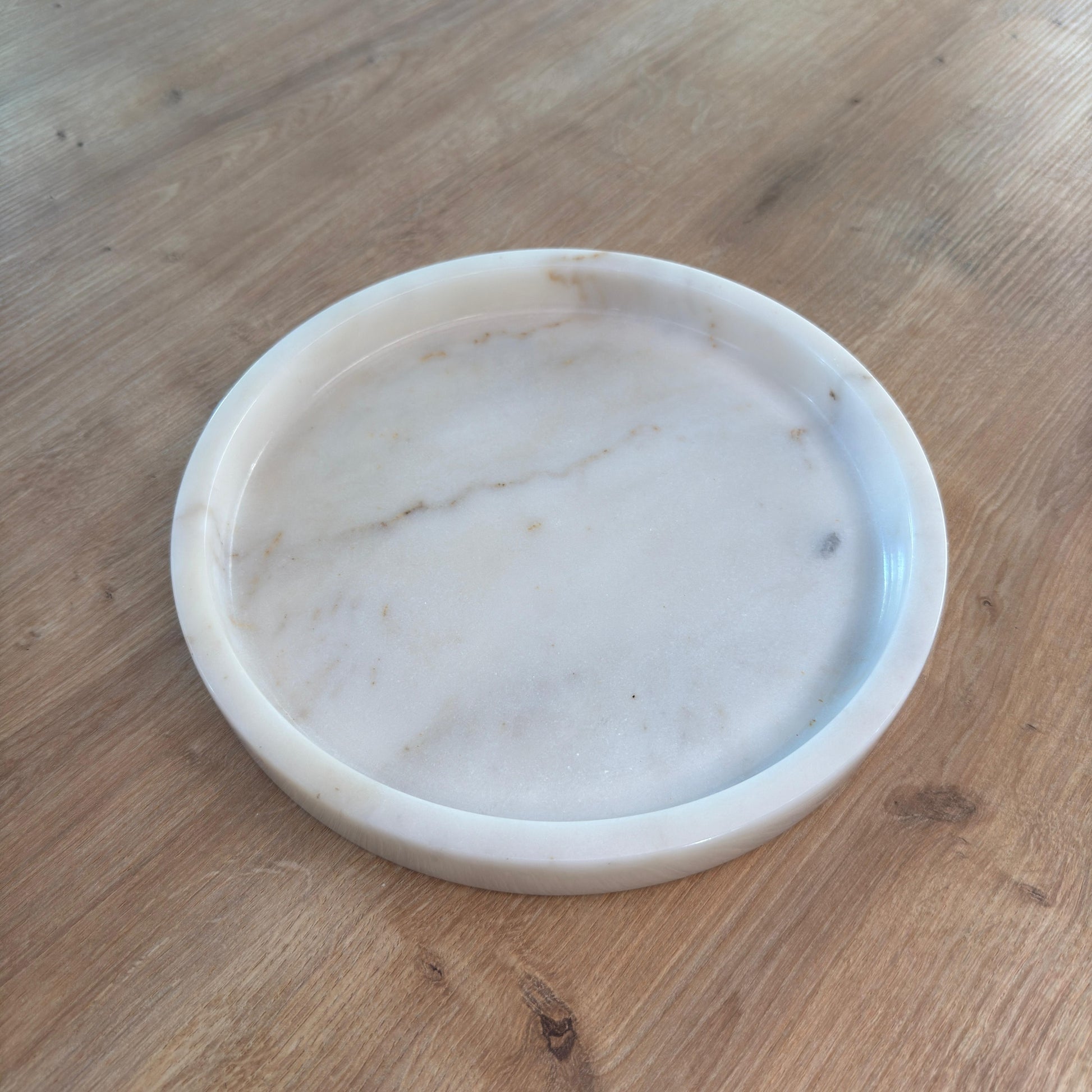 - Beyaz Mermer Yuvarlak Banyo Düzenleyici - Dekoratif Tabak