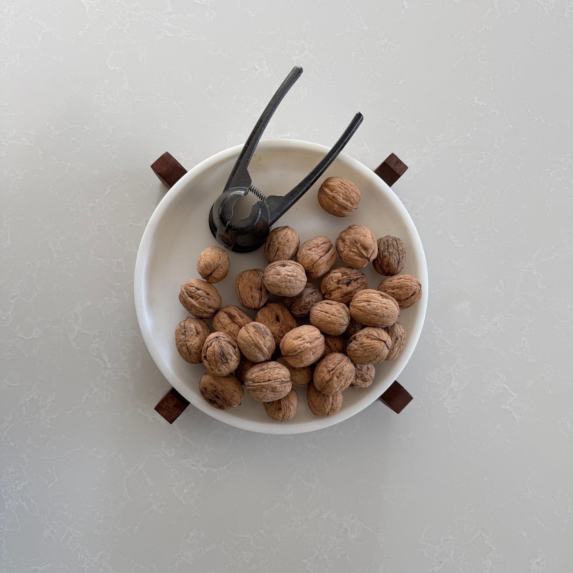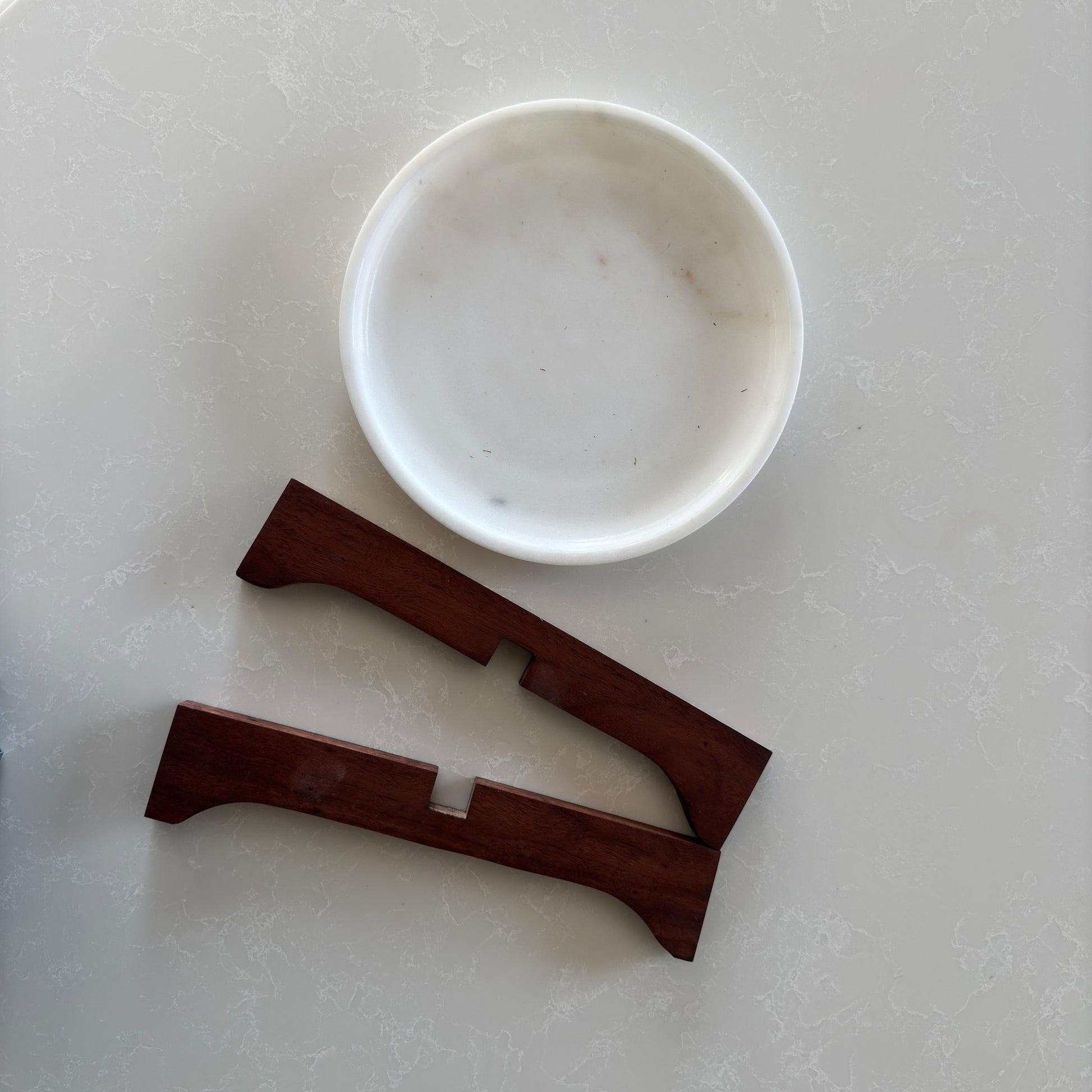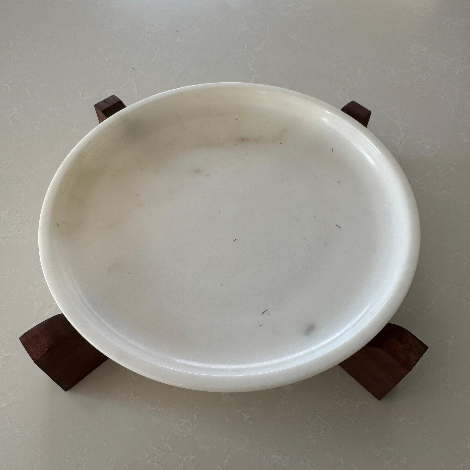 Ceviz Ahşap Ayaklı Beyaz Mermer Sunumluk , Ceviz Ahşap Ayaklı Beyaz Mermer Dekoratif Kase