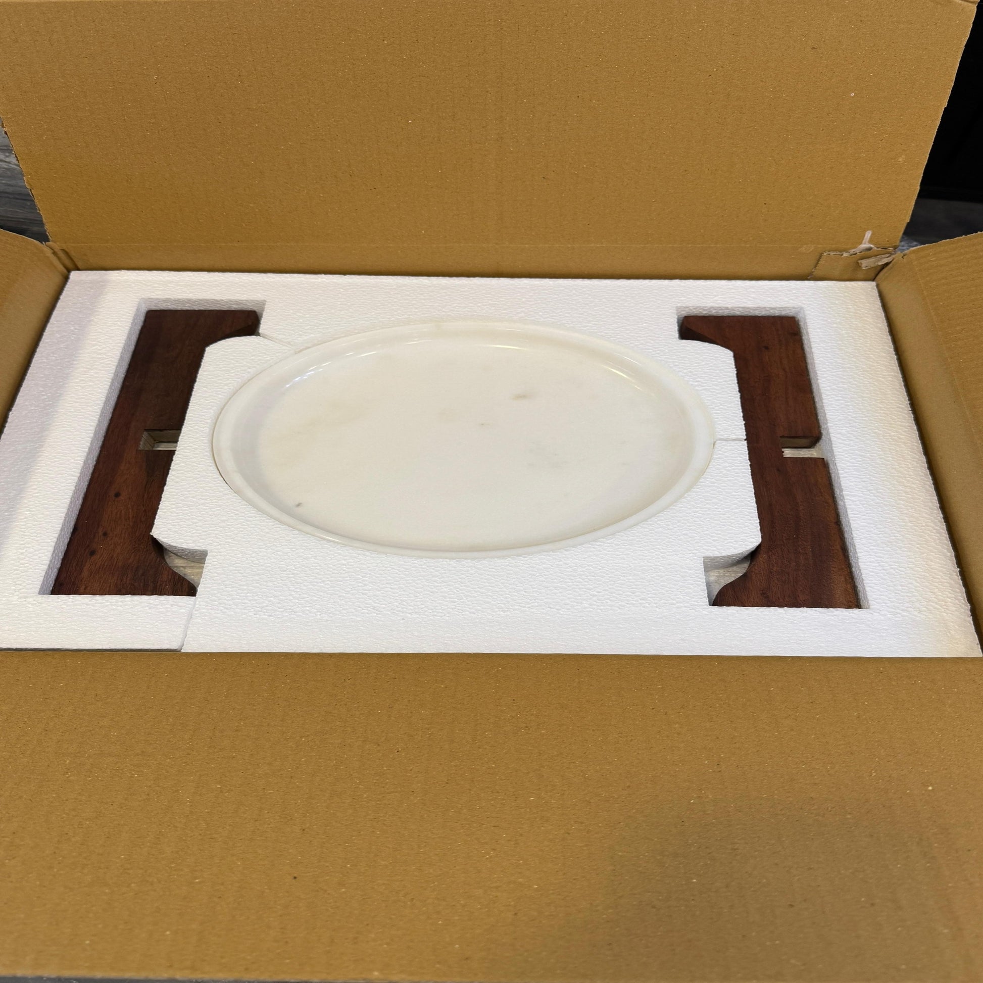 - Ceviz Ahşap Ayaklı Beyaz Mermer Sunumluk,