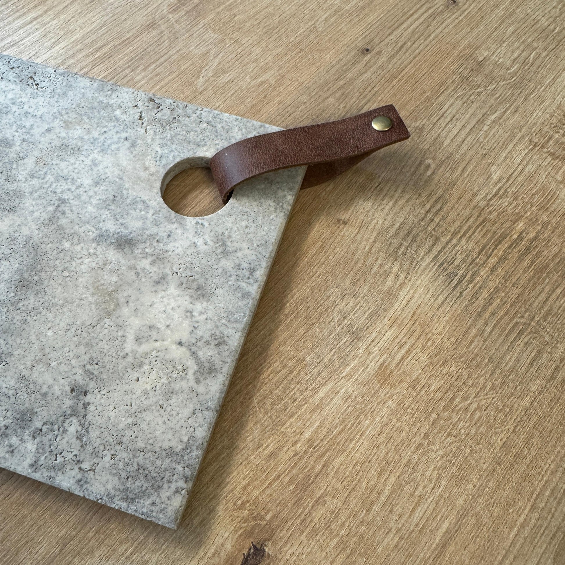 Deri Dekorlu Gri Traverten Mermer Sunumluk , Lüks Ev Hediyesi