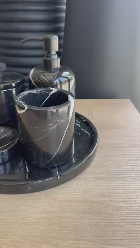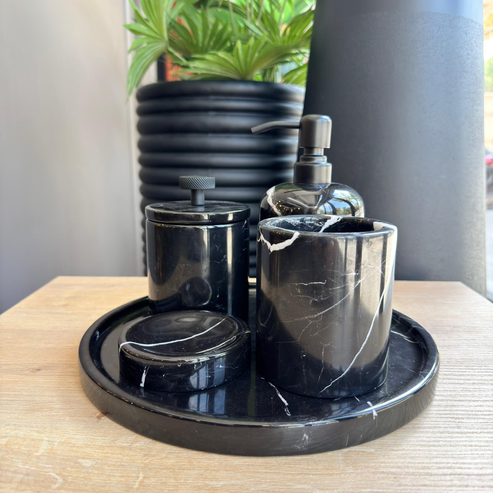 - Doğal toros siyahı mermer 'den üretilmiş, banyonuza şıklık katan beş parçadan oluşan set.