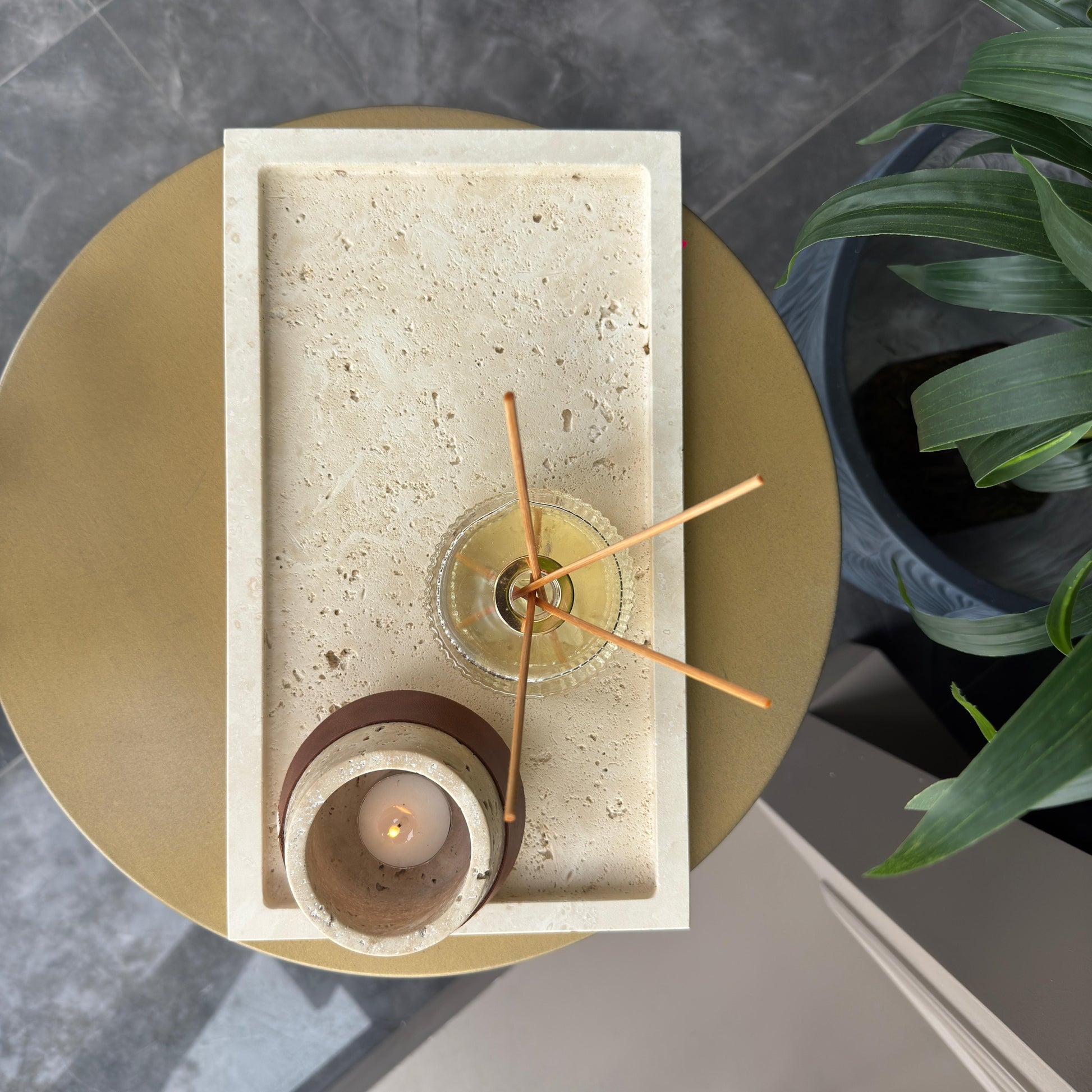 Traverten Mermer Dikdörtgen Banyo Düzenleyici & Organizer, Traverten Mermer Sunumluk, Lüks Ev Hediyesi
