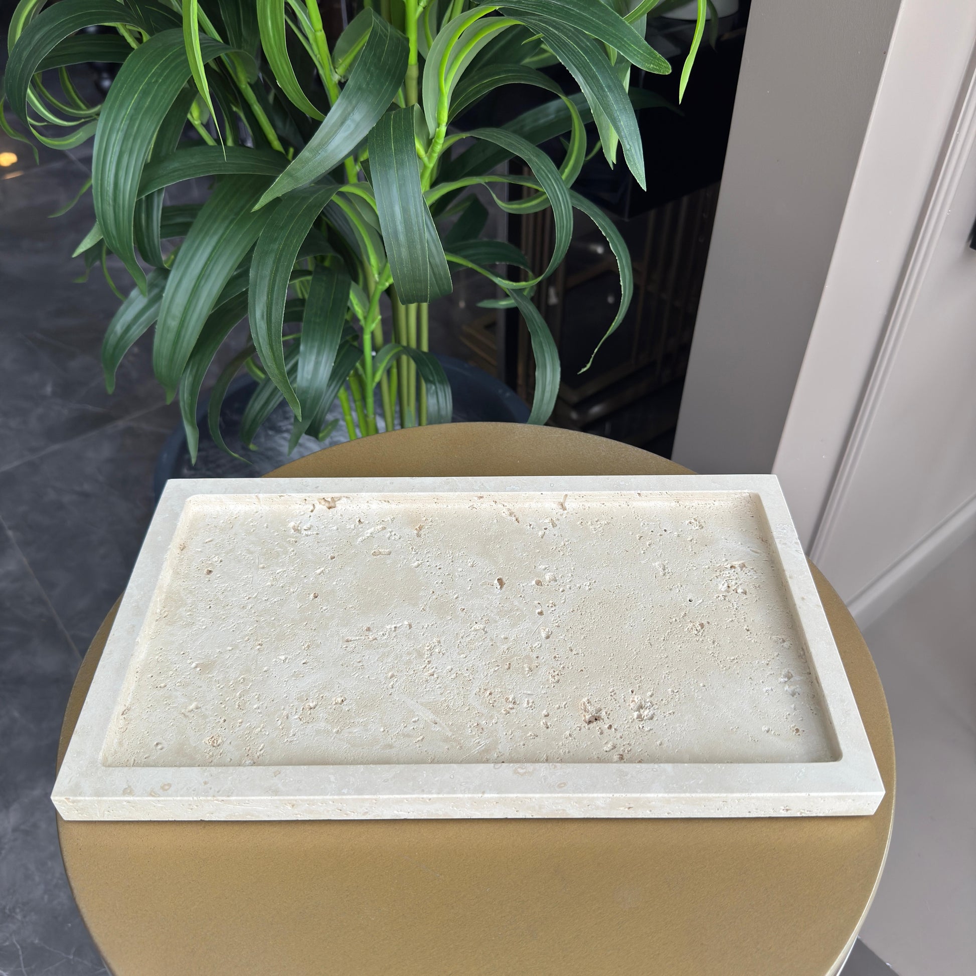 Traverten Mermer Dikdörtgen Banyo Düzenleyici & Organizer, Traverten Doğal Mermer Sunumluk, Lüks Ev Hediyesi ,