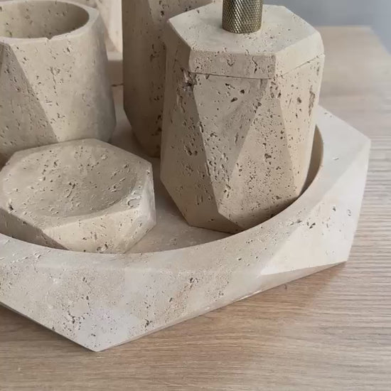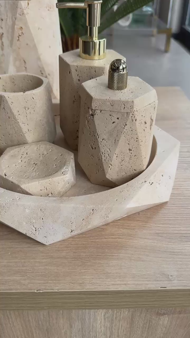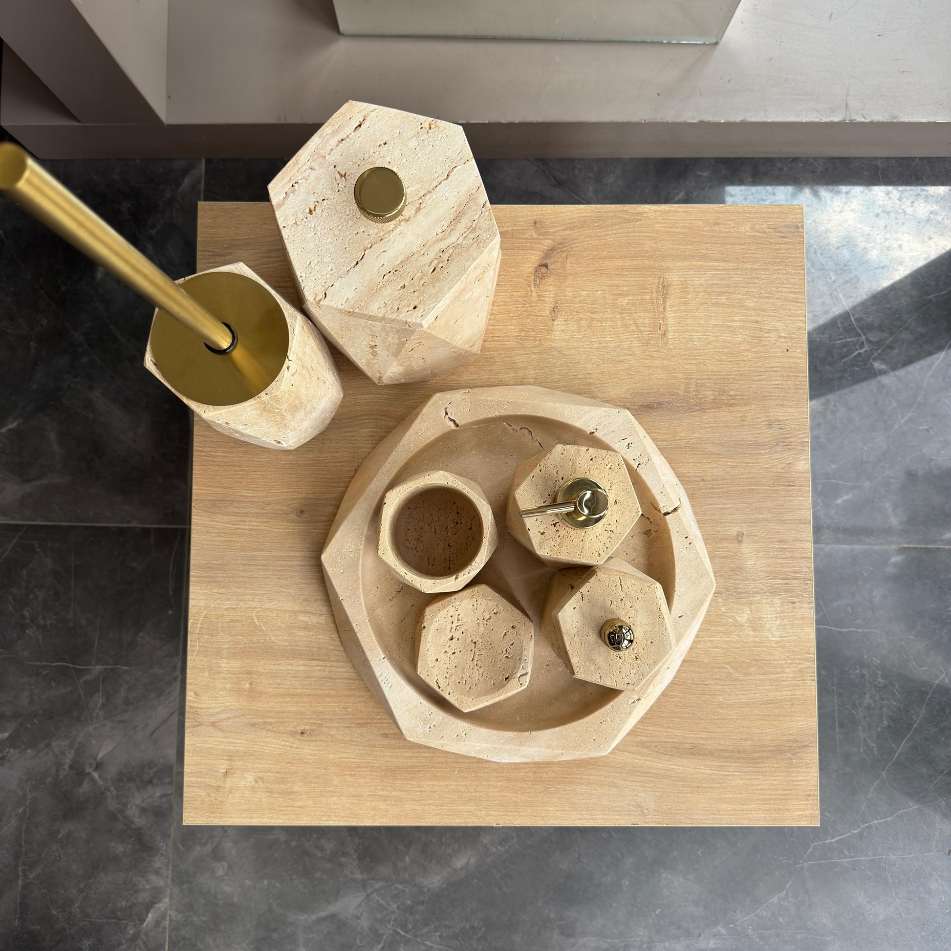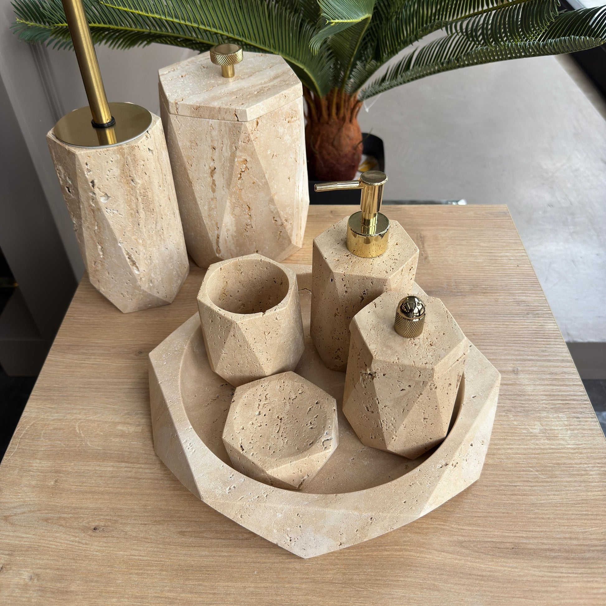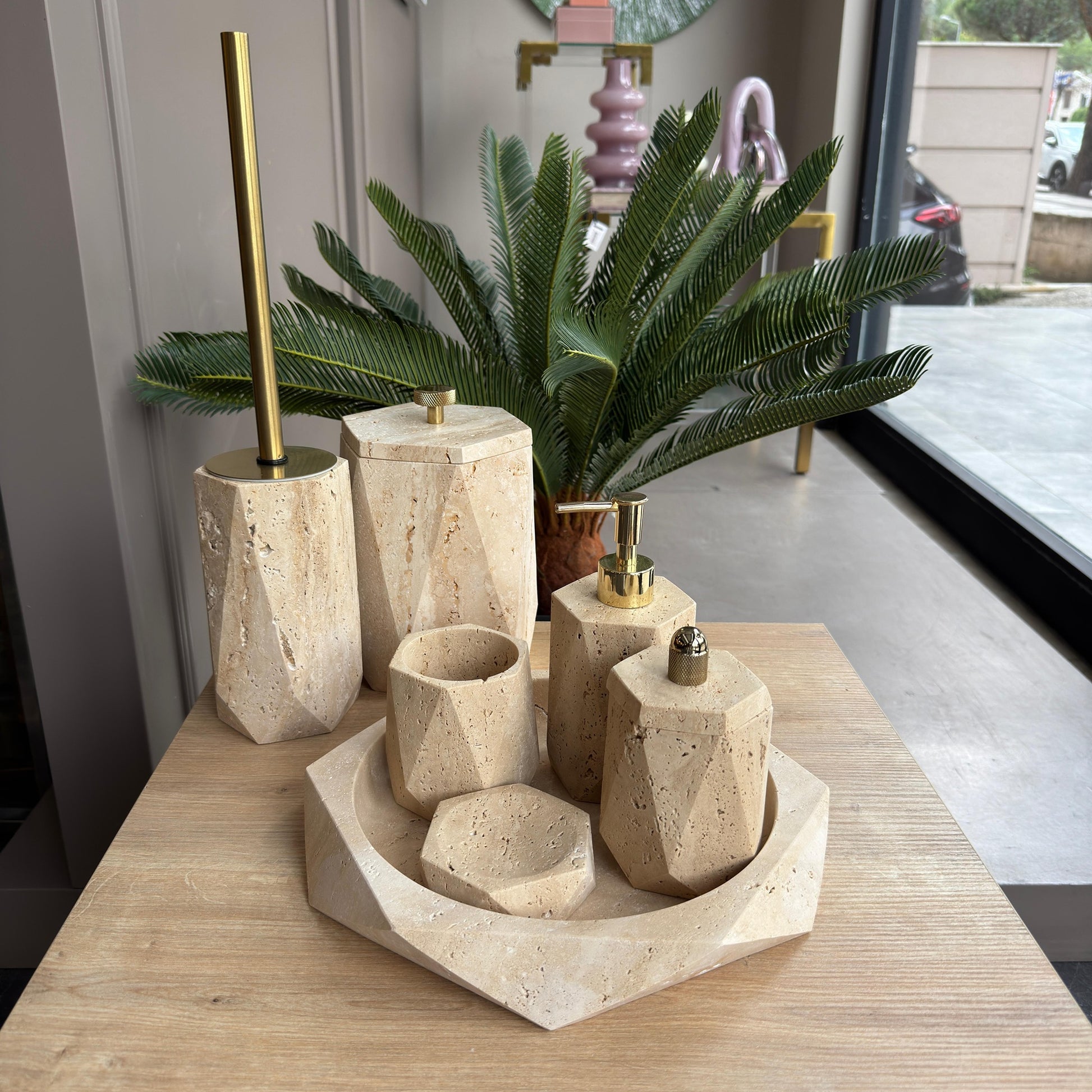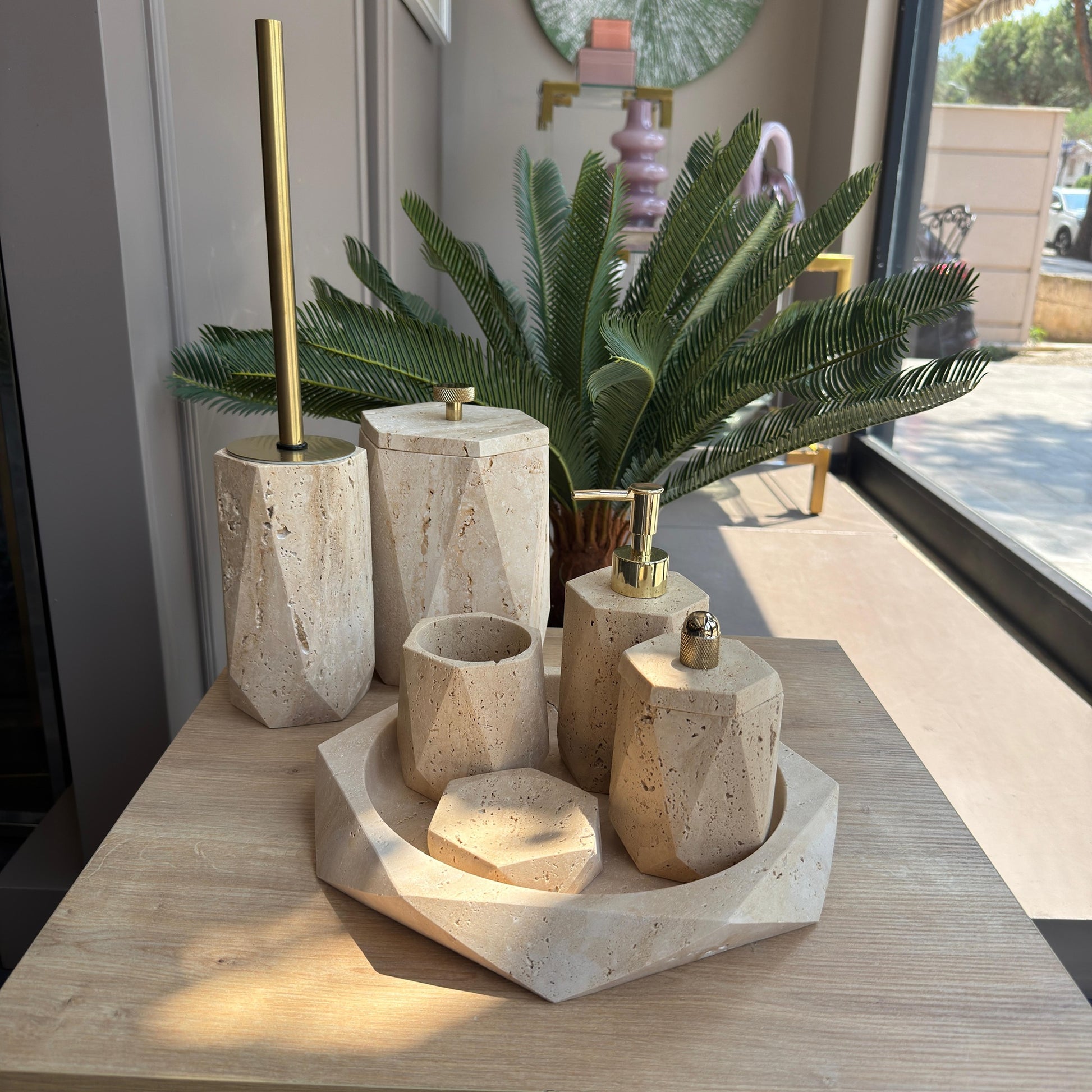 Traverten Mermer Elmas Kesim 7'li Banyo Seti ;